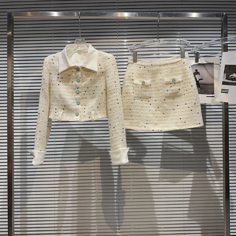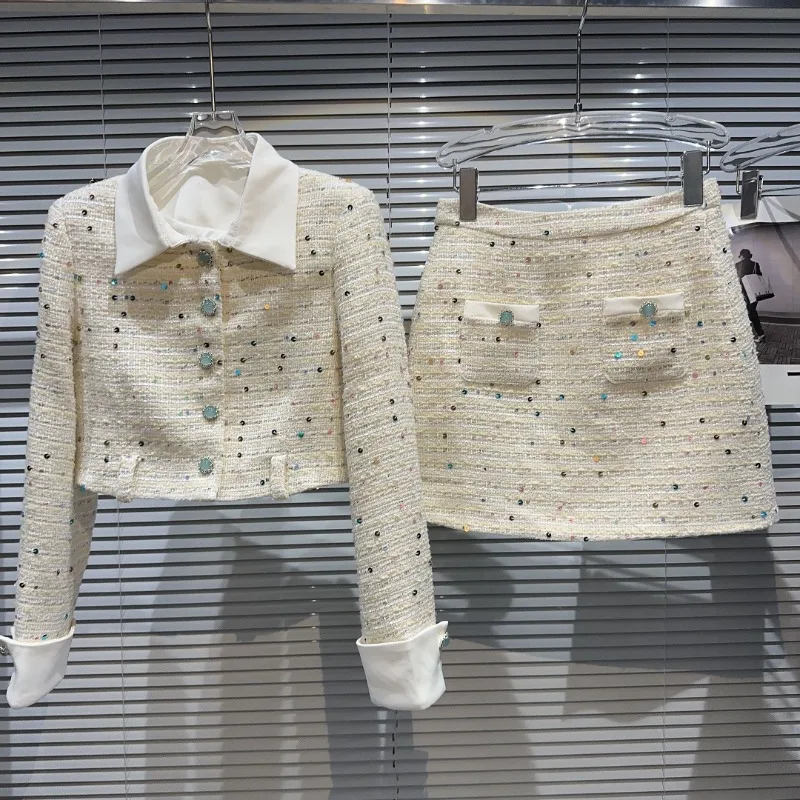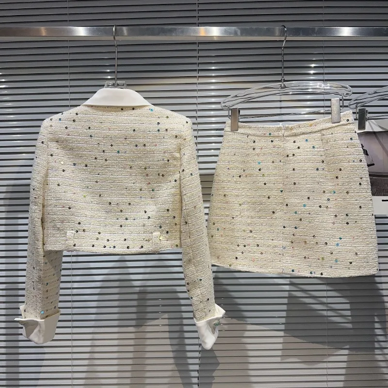 This Diamond Beaded Skirt Two Piece Set is the perfect combination of sophistication and elegance. Boasting exquisite diamond beaded details and a timeless design, this set will add a classic touch to any wardrobe. Crafted with attention to detail and made from the finest materials, these pieces will be sure to turn heads.