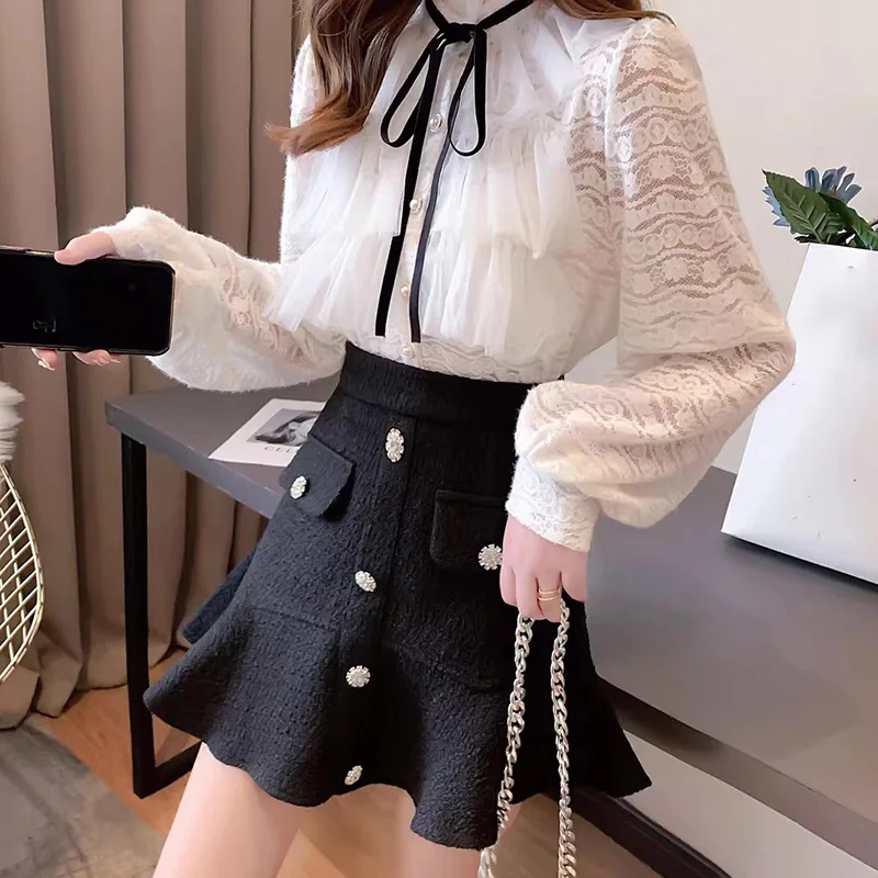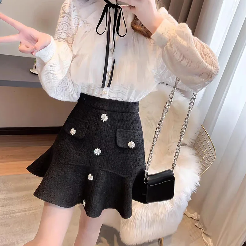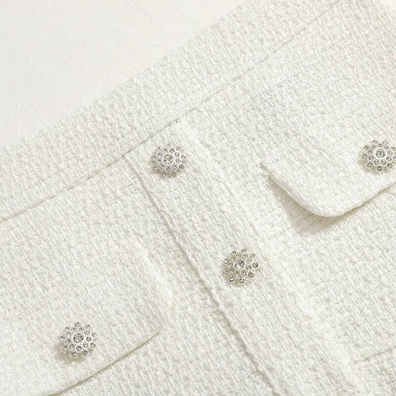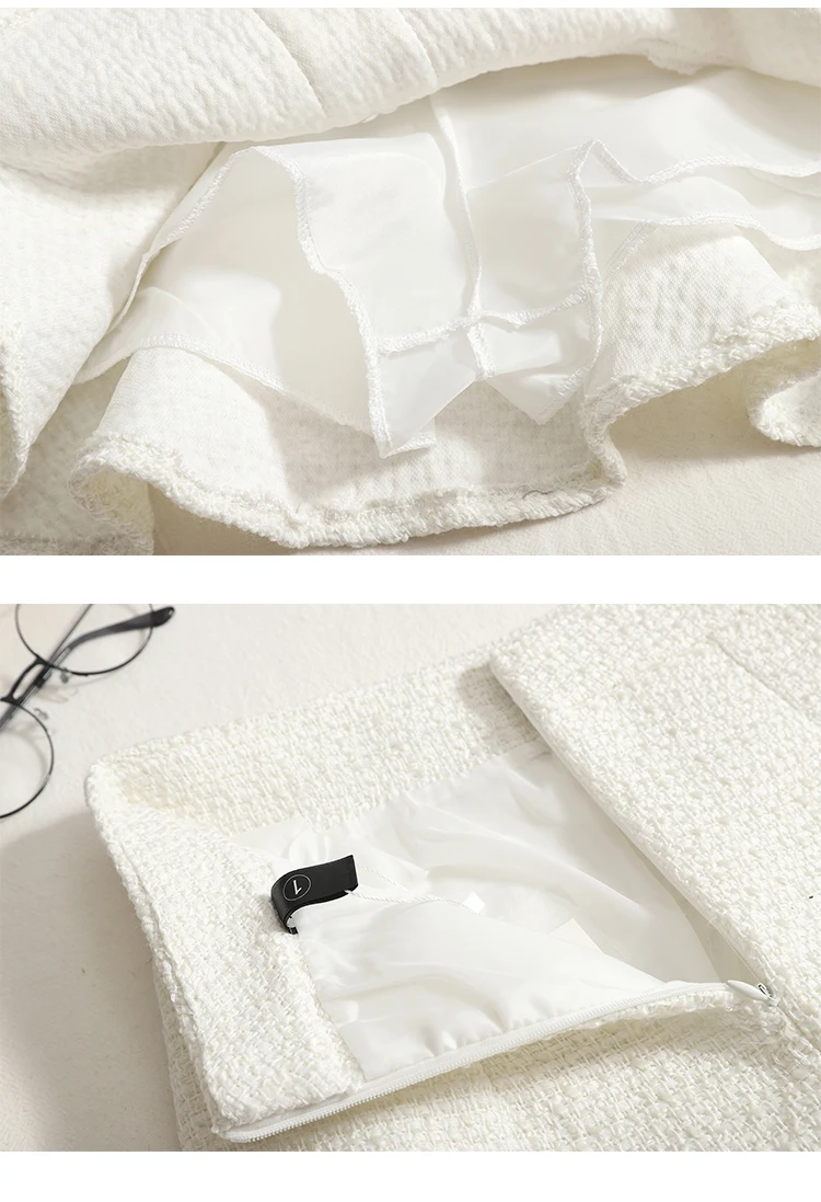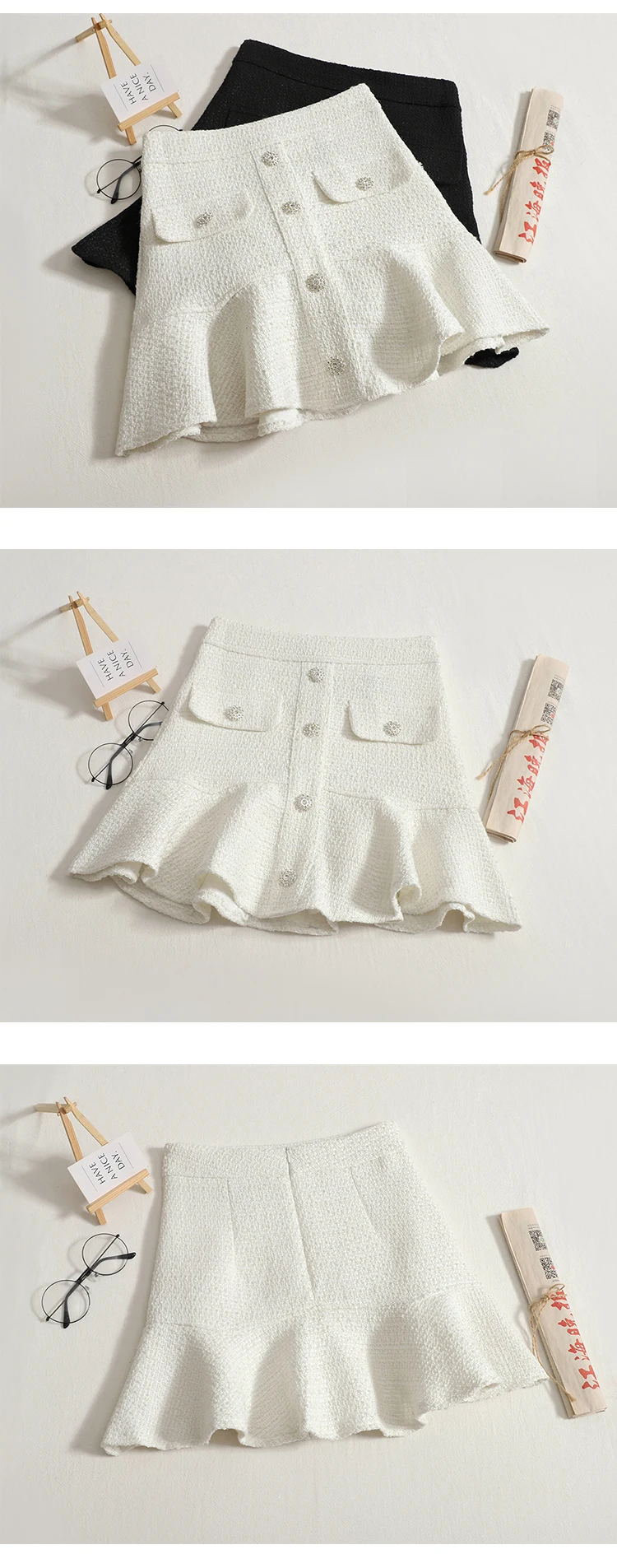 Stay stylish and chic in this tweed skirt featuring chic ruffles. This high quality fabric is designed to last and is sure to keep you looking fashionable all season long