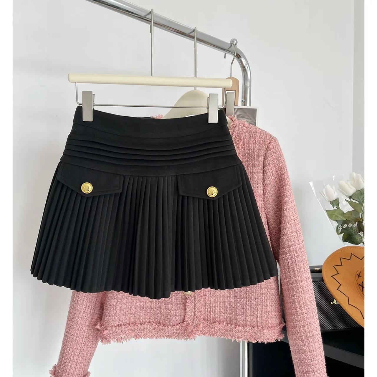 This Pleated Vintage Mini Skirt is a modern twist on a classic, featuring a flattering cut and pleats for an elegant, timeless look. Crafted with quality fabrics, this exquisite piece is perfect for any special occasion.