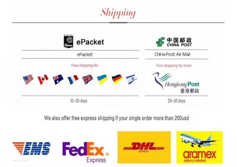 3.if you are urgently to get your order,please choose express methods,but you should pay the shipping fee.