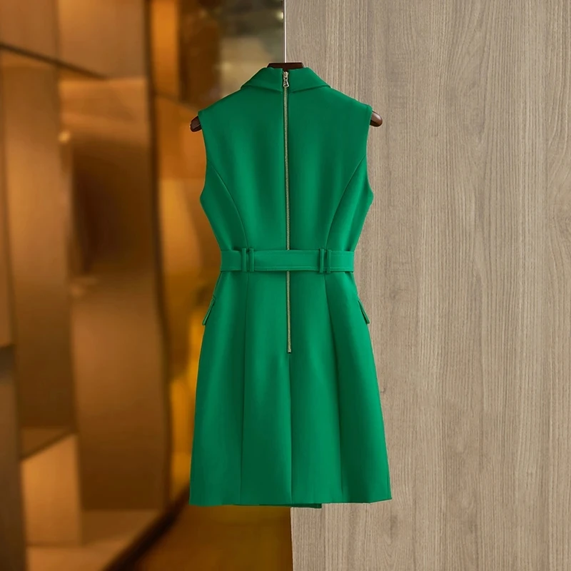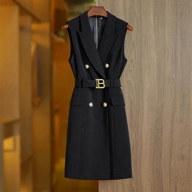 Our Smart Sleeveless Women Blazer Dress is designed with quality tailoring, featuring a stylish belted waist to accentuate the wearer’s silhouette. Crafted with durable fabric, this dress is a wardrobe essential for any modern woman.